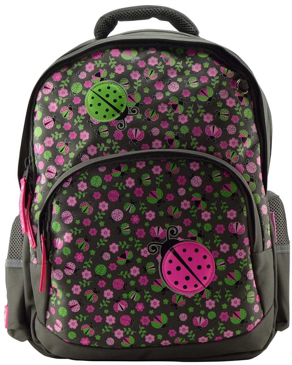 Рюкзак Bruno Visconti "Божьи коровки.Цветы" темно-серый, 2 отд., эргоном.спинка, 30х40х19