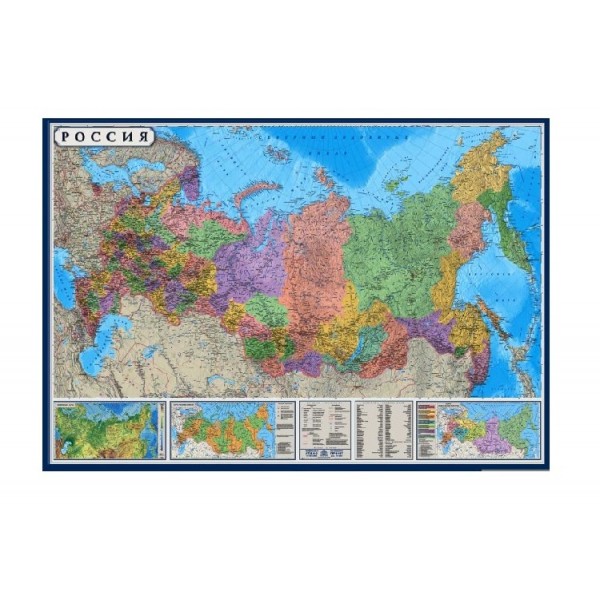 Карта "РФ" политико-административная 1:8,5М, 101х70, интерактивная, с ламинацией