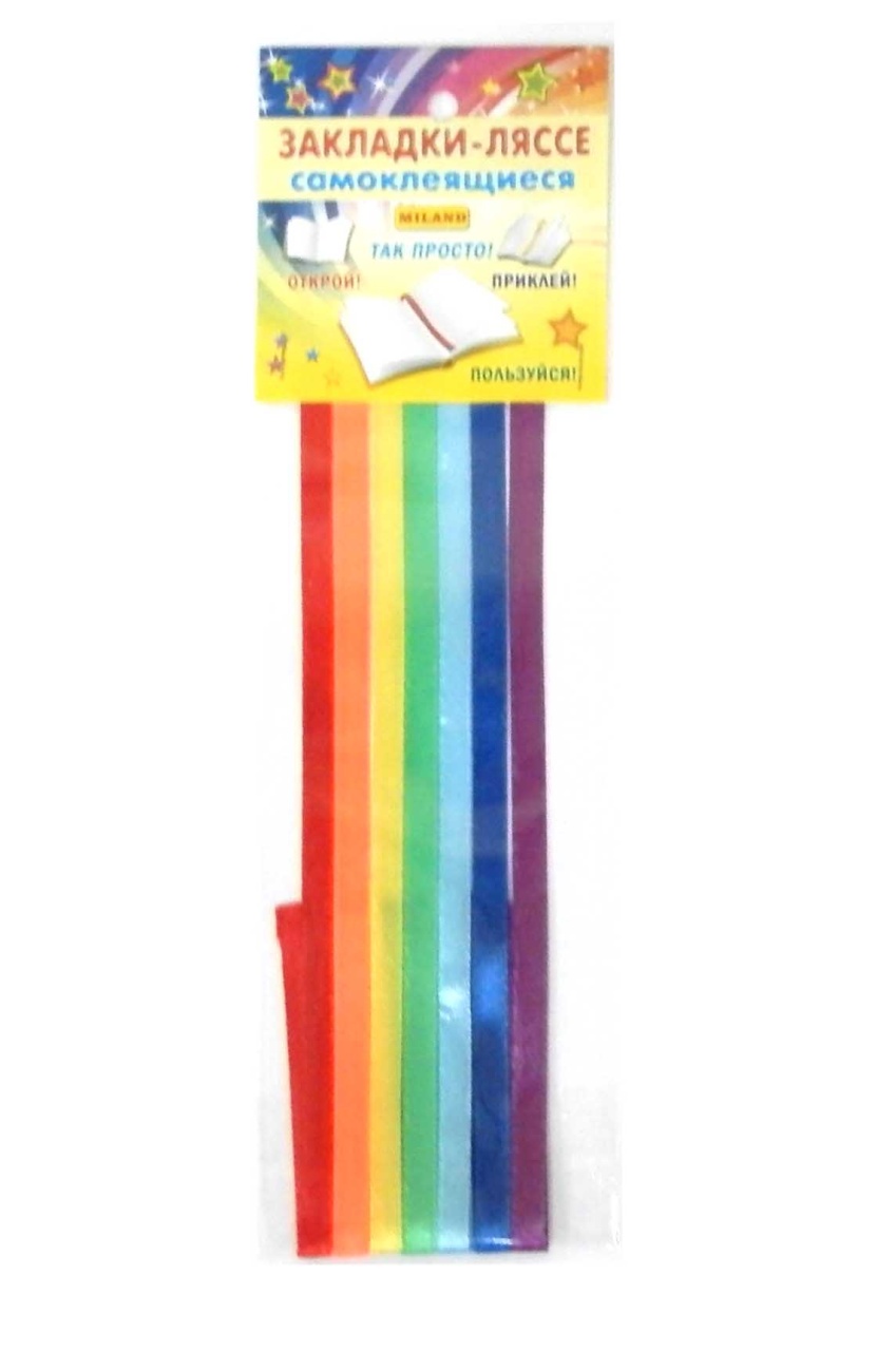 Закладка-ляссе — одна из самых удобных закладок для учебников, книг и тетрадей. Она очень проста в использовании: липкую сторону нужно приклеить на заднюю часть обложки и плотно прижать. При необходимости лишнюю длину можно отрезать. Количество: 7 шт.