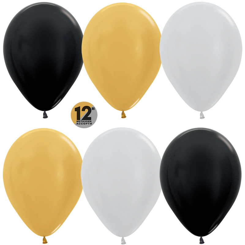 Шар (12''/30 см) Ассорти (481/570/580), металлик, 50 шт.