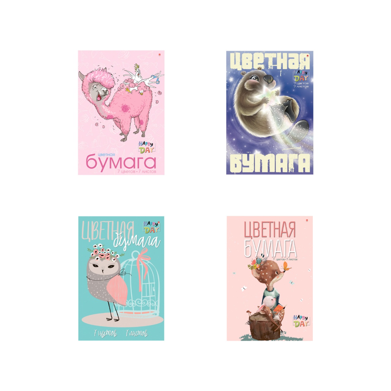 НАБОР ЦВЕТНОЙ БУМАГИ А4, 7 Л. 7ЦВ. "МУЛЬТИКИ" 4 ВИДА