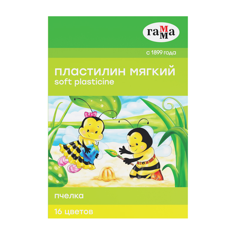 Пластилин 16цв. ГАММА "Пчелка" восковой, со стеком, карт.уп 240г., европодвес
