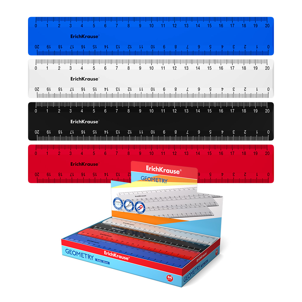 Линейка пластиковая ErichKrause® Classic, 20см, ассорти из 4 цветов, в коробке-дисплее