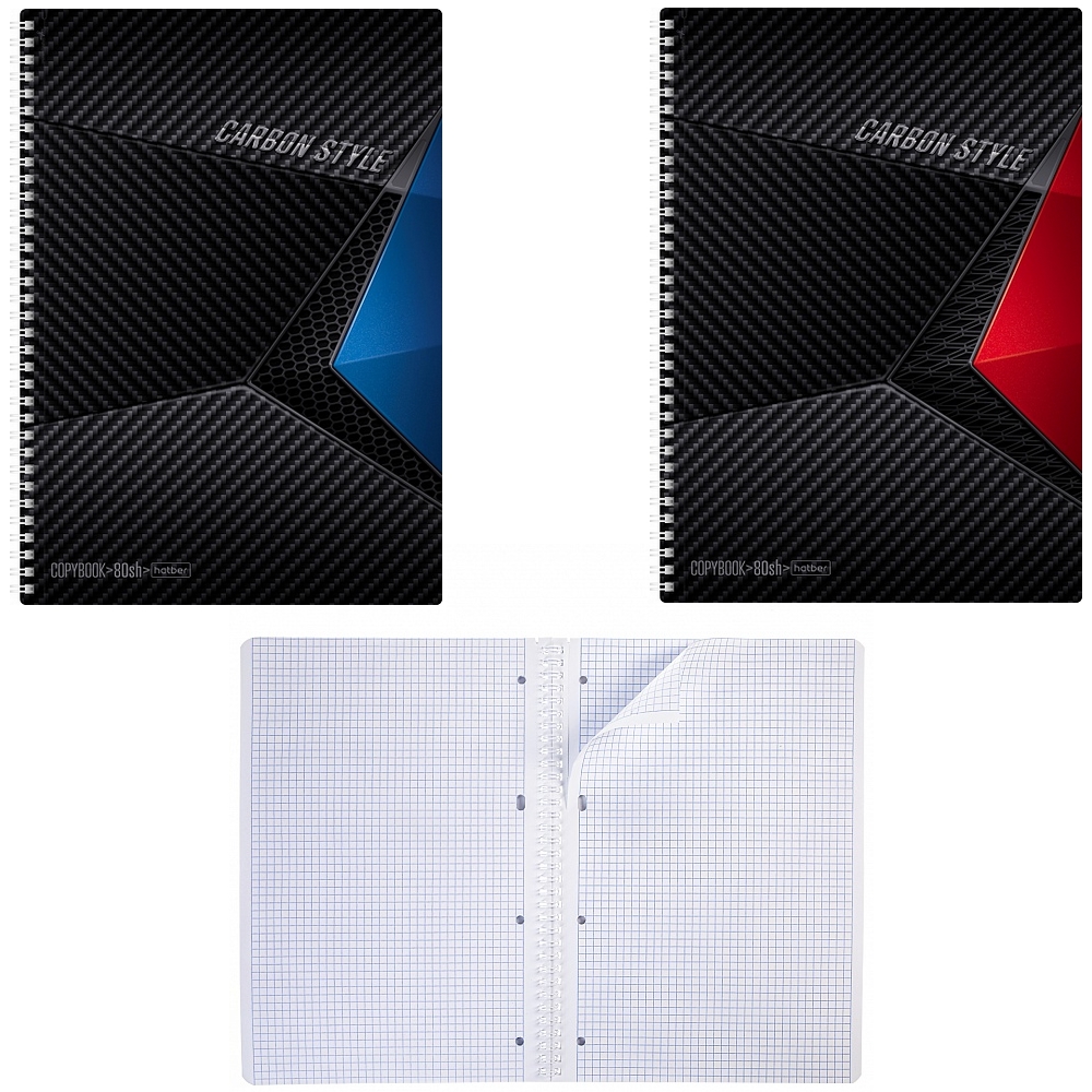 Тетрадь 80л А4ф клетка на гребне выб лак 2 диз. в блоке серия -CarbonStyle-