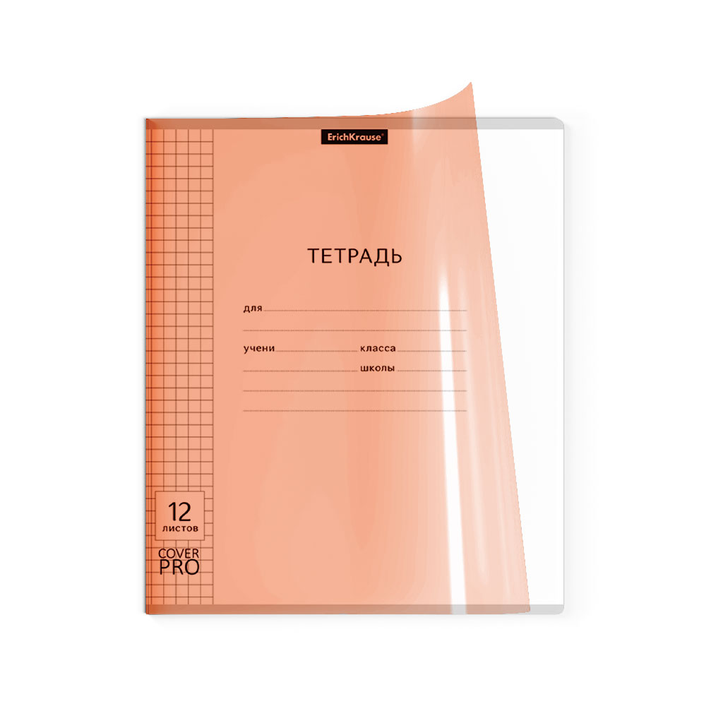 Тетрадь школьная ученическая с пластиковой обложкой на скобе ErichKrause® Классика CoverPrо Neon, оранжевый, А5+, 12 листов, клетка