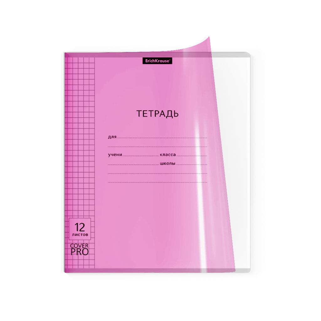 Тетрадь школьная ученическая с пластиковой обложкой на скобе ErichKrause® Классика CoverPrо Neon, розовый, А5+, 12 листов, клетка