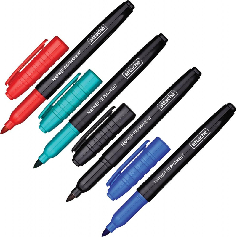 Набор маркеров перманентных Attache 4 цвета (толщина линии 1,5-3 мм) круглый наконечник