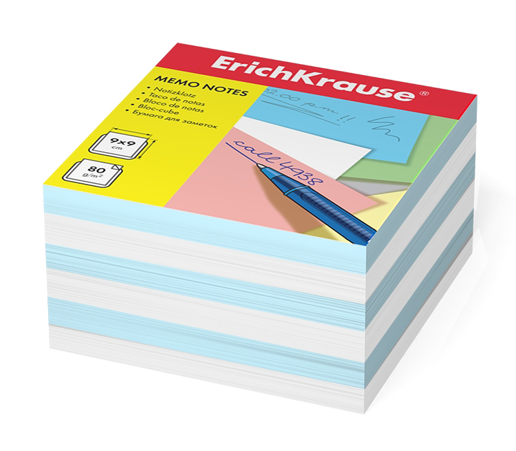 Бумага для заметок ERICH KRAUSE 9х9х5 2 цв, голубой