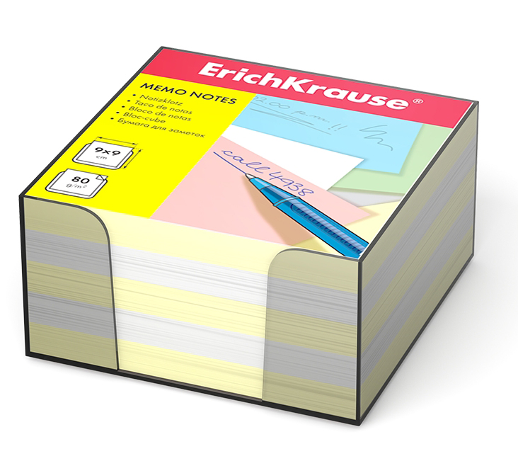 Бумага для заметок ERICH KRAUSE 9х9х5 2 цв., прозр. подст., жёлтый