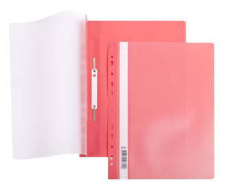 Папка-скоросшиватель ХАТБЕР А4 красная, с перфорацией, 140/180мкм., прозрачный верх