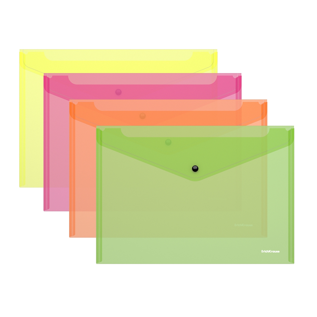 Папка-конверт А4 на кнопке ERICH KRAUSE Fizzy Neon полупрозрачная, ассорти