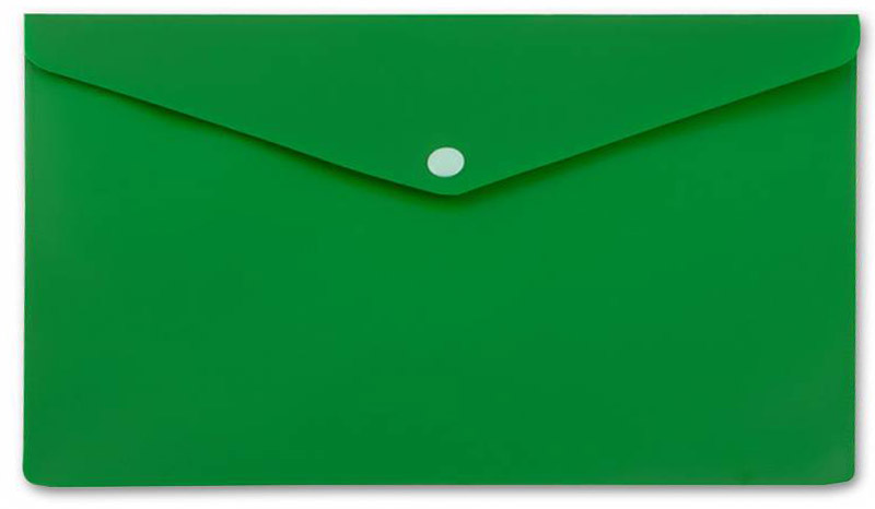 Папка-конверт А5 на кнопке Бюрократ зелёный непрозрачный пластик 0.18мм