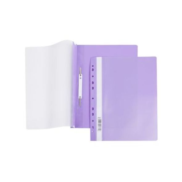 Папка-скоросшиватель ХАТБЕР А4 фиолетовая, с перфорацией, 140/180мкм., прозрачный верх