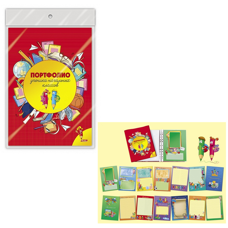 Портфолио-вкладыши школьника ХАТБЕР "Веселые карандаши" 16л., в пакете с европодвесом