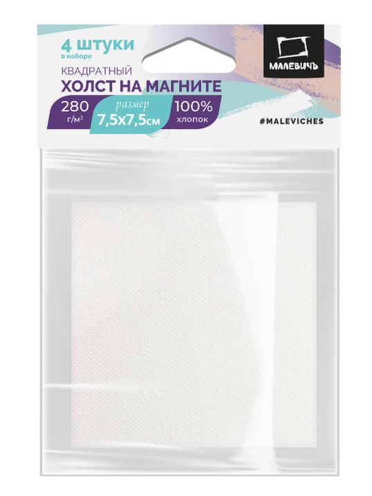 Набор холстов-магнитов Малевичъ 7,5х7,5см., квадратные, 4шт.