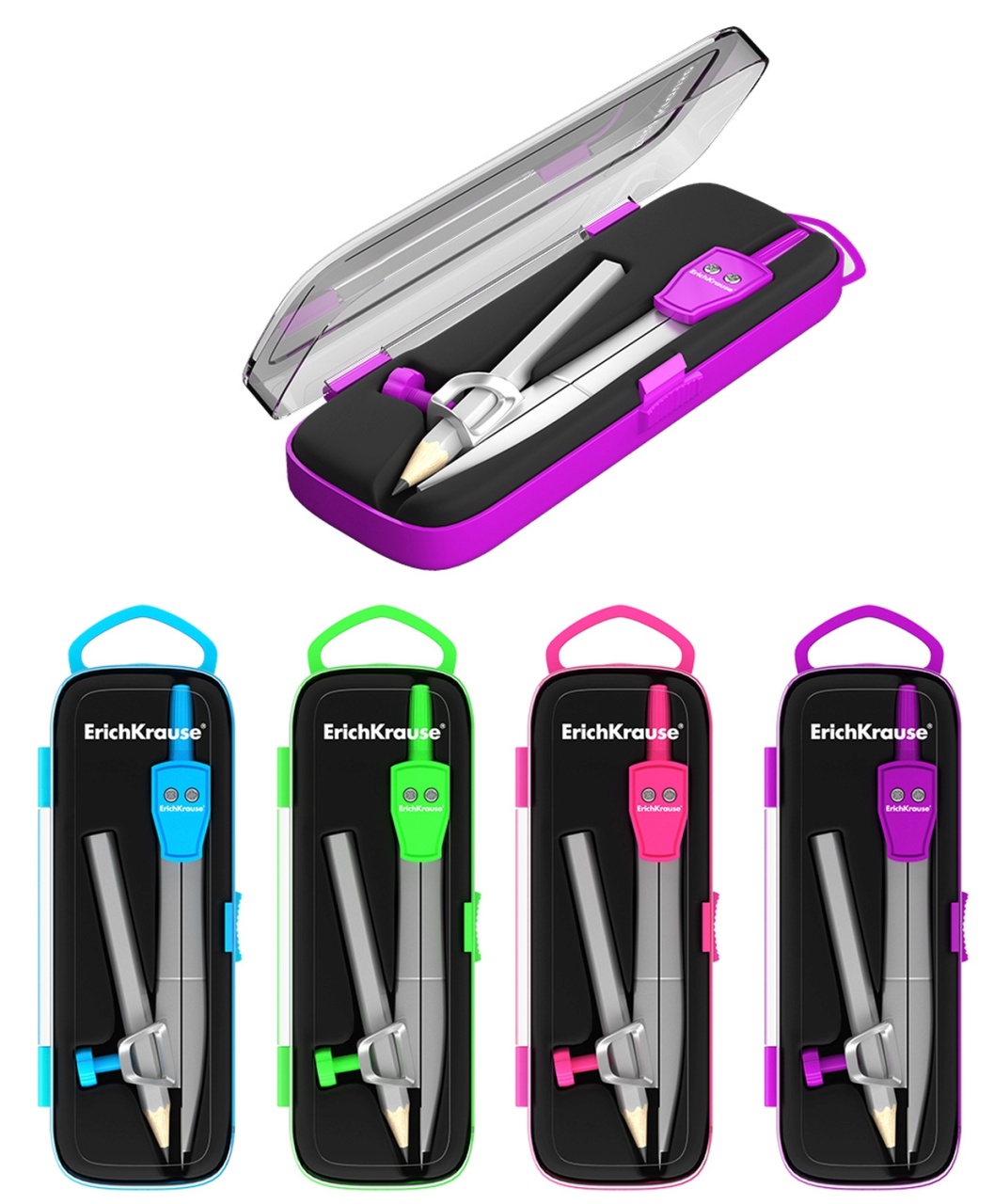 Циркуль ERICH KRAUSE School металлический, с карандашом, 123мм., в пенале