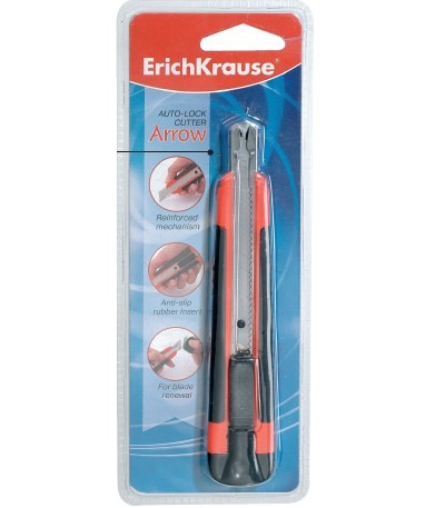 Нож канцелярский ERICH KRAUSE 9мм Arrow auto-lock красный, европодвес