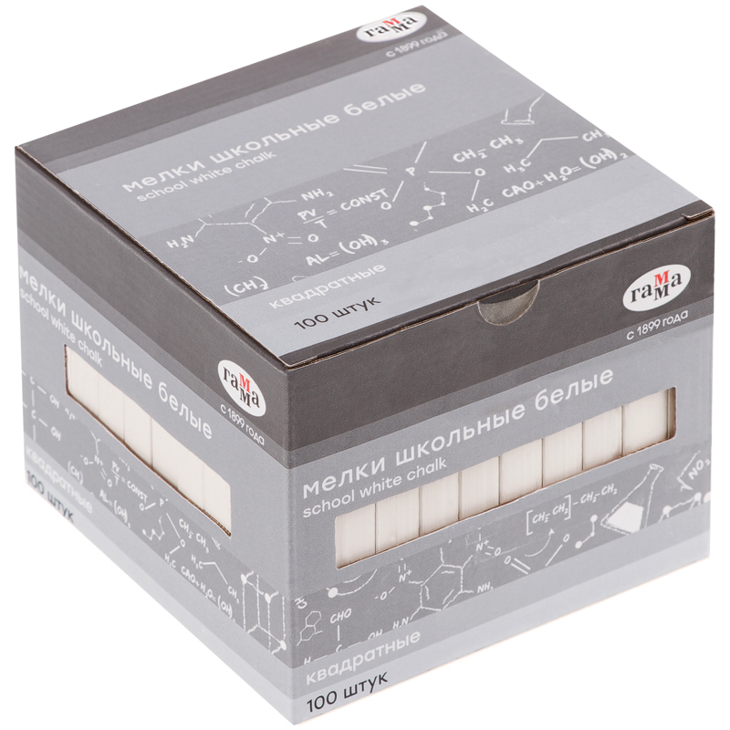 Мел белый ГАММА 100шт., квадратный, мягкий, картон. упак., европодвес
