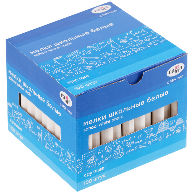 Мел белый ГАММА 100шт., круглый, мягкий, картон. упак., европодвес