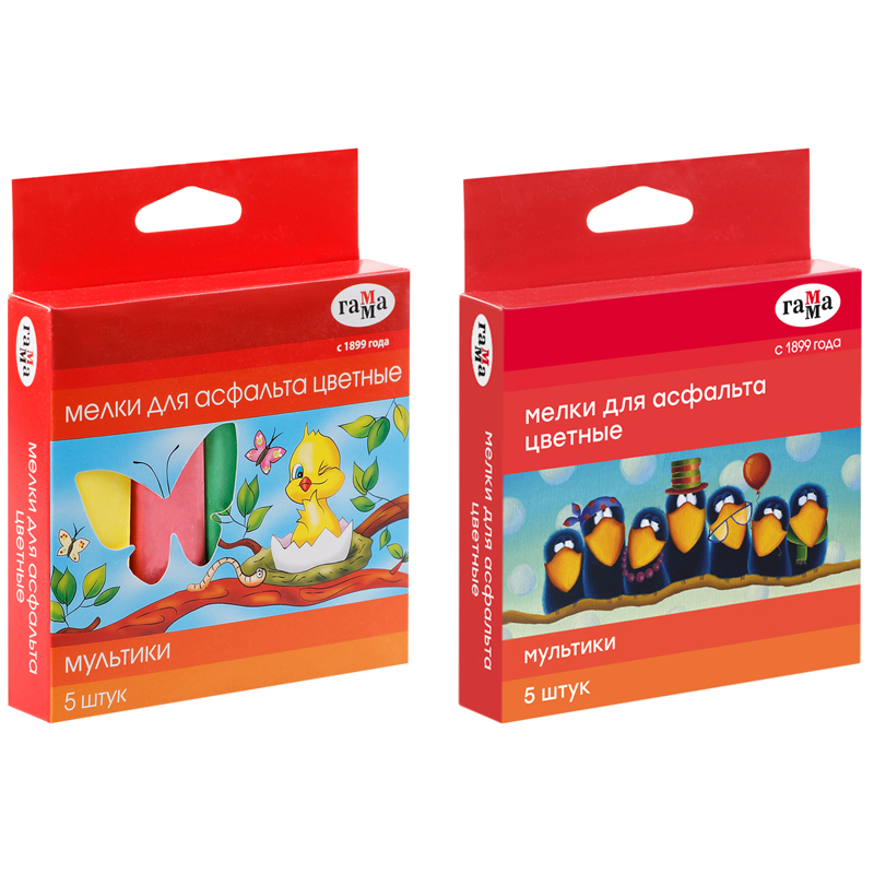 Мел цветной 05цв. ГАММА "Мультики" асфальтный, картонная коробка