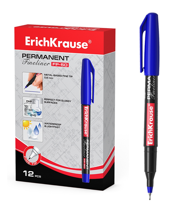 Маркер ERICH KRAUSE FP-50 перманентный линер, синий, толщина линии письма 0.6 мм