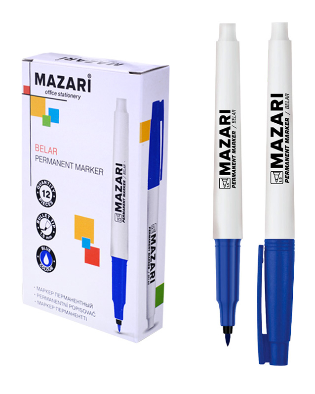 Маркер Mazari "Belar" синий, перманентный, остроконечный пиш.узел 1.5 мм.