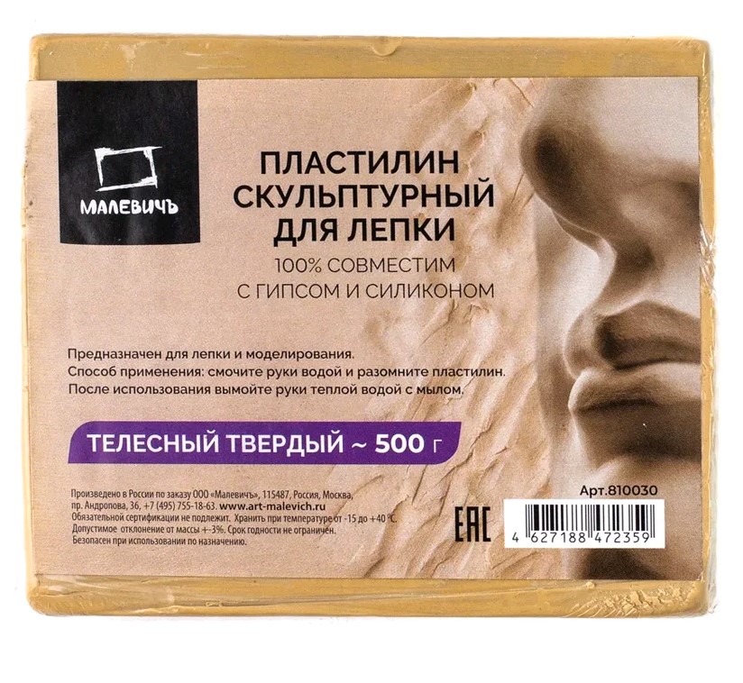 Пластилин скульптурный Малевичъ телесный, 500гр., твердый