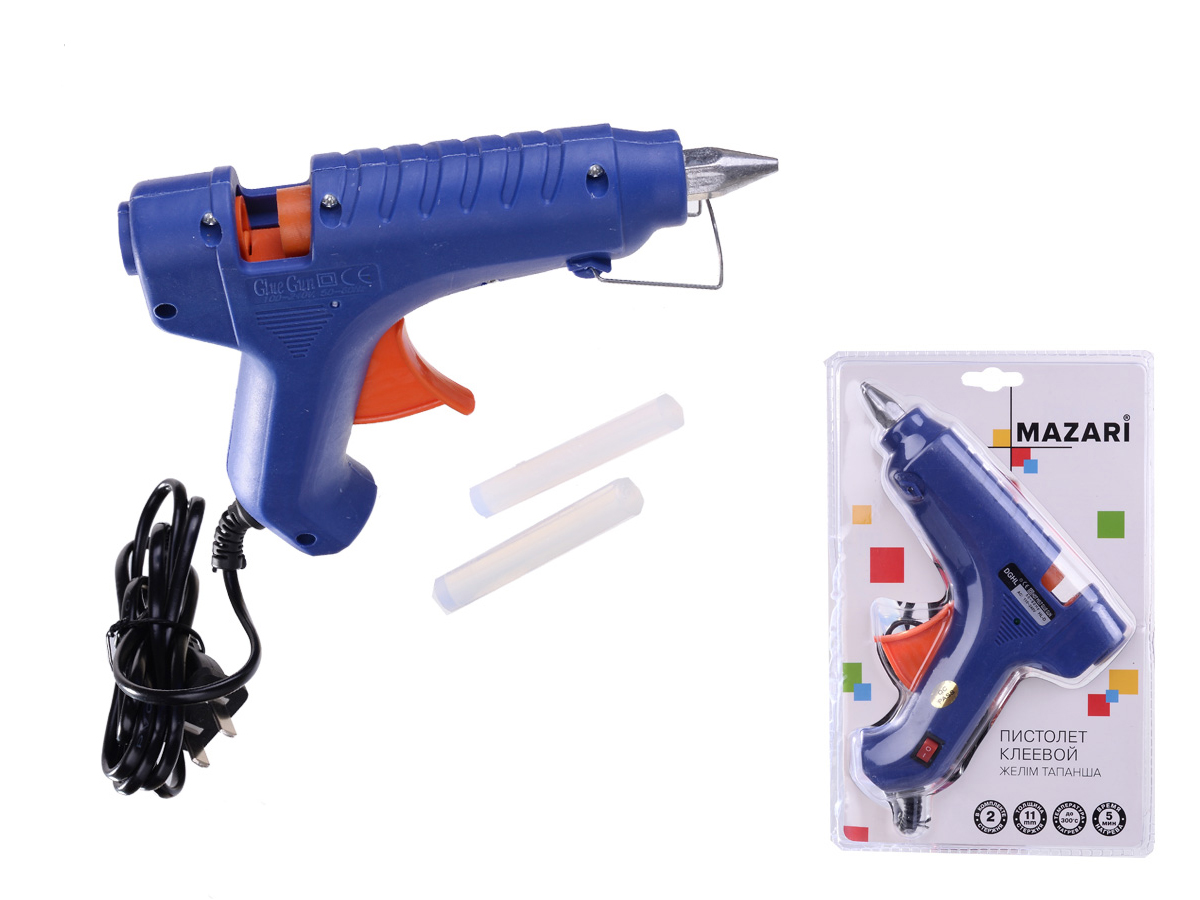 Пистолет клеевой Mazari толщина отверстия для стержня 11 мм, блистерная упаковка, с кнопкой вкл.