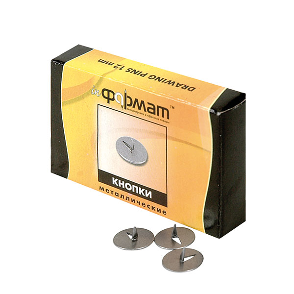 Кнопки канцелярские inФормат 12мм 100шт., карт.уп.