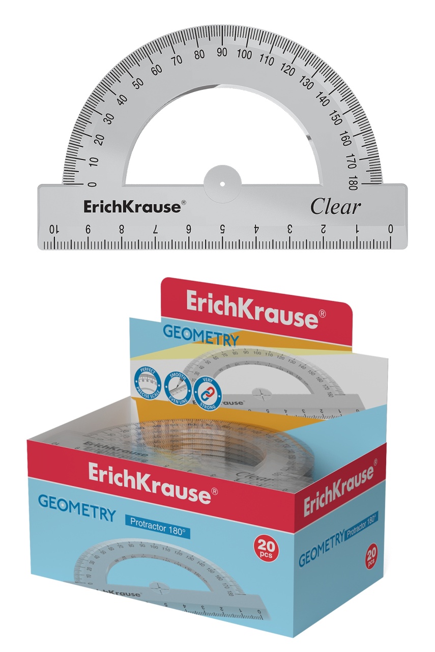 Транспортир ERICH KRAUSE "Clear" 10см., 180°, прозрачный, в дисплее