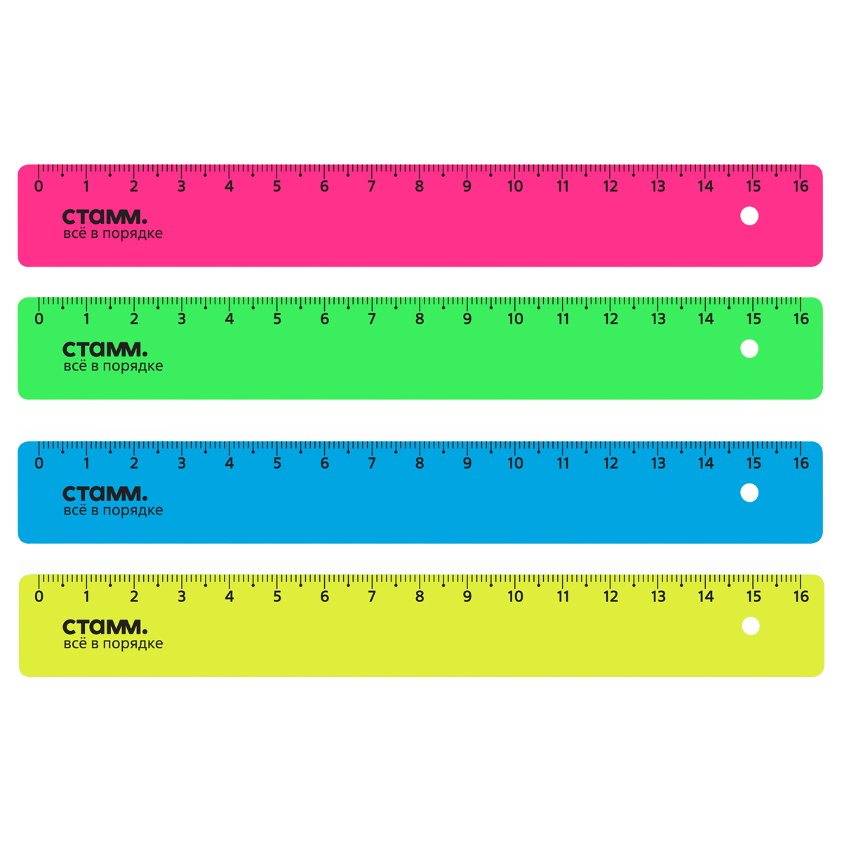 Линейка 16см СТАММ непрозрачная, неоновые цвета, ассорти