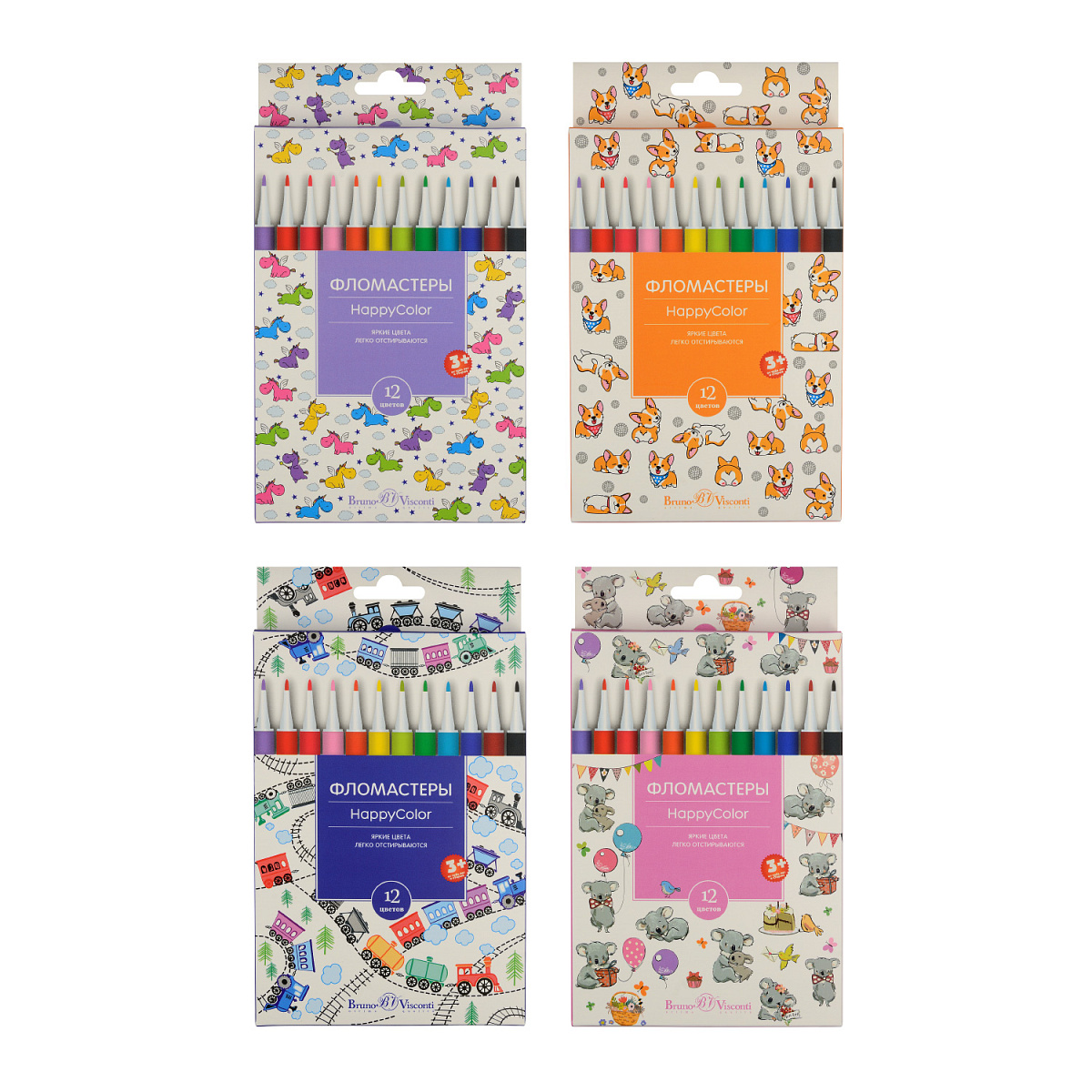 Классические фломастеры "HappyColor" ТМ Bruno Visconti подходят как для маленьких детей, так и для школьников. Яркие сочные цвета чернил, качественные наконечники из синтетического волокна, устойчивые к сильному нажиму, корпус из полипропилена, который при поломке не образует острых краев, безопасные вентилируемые колпачки – все это гарантирует удовольствие от использования фломастеров. Чернила на водной основе нетоксичны, не имеют запаха, легко смываются с рук и отстирываются с одежды, что немаловажно, когда фломастеры берет в руки маленький ребенок. Набор из 12 фломастеров содержит все основные цвета, необходимые для раскрашивания, создания скетчей и иллюстраций.
