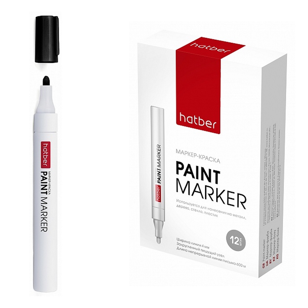 Маркер -краска Hatber металлический корпус закругленный пишущий узел толщина линии 1-4 мм Черная 12шт. в карт. Мини-Дисплее