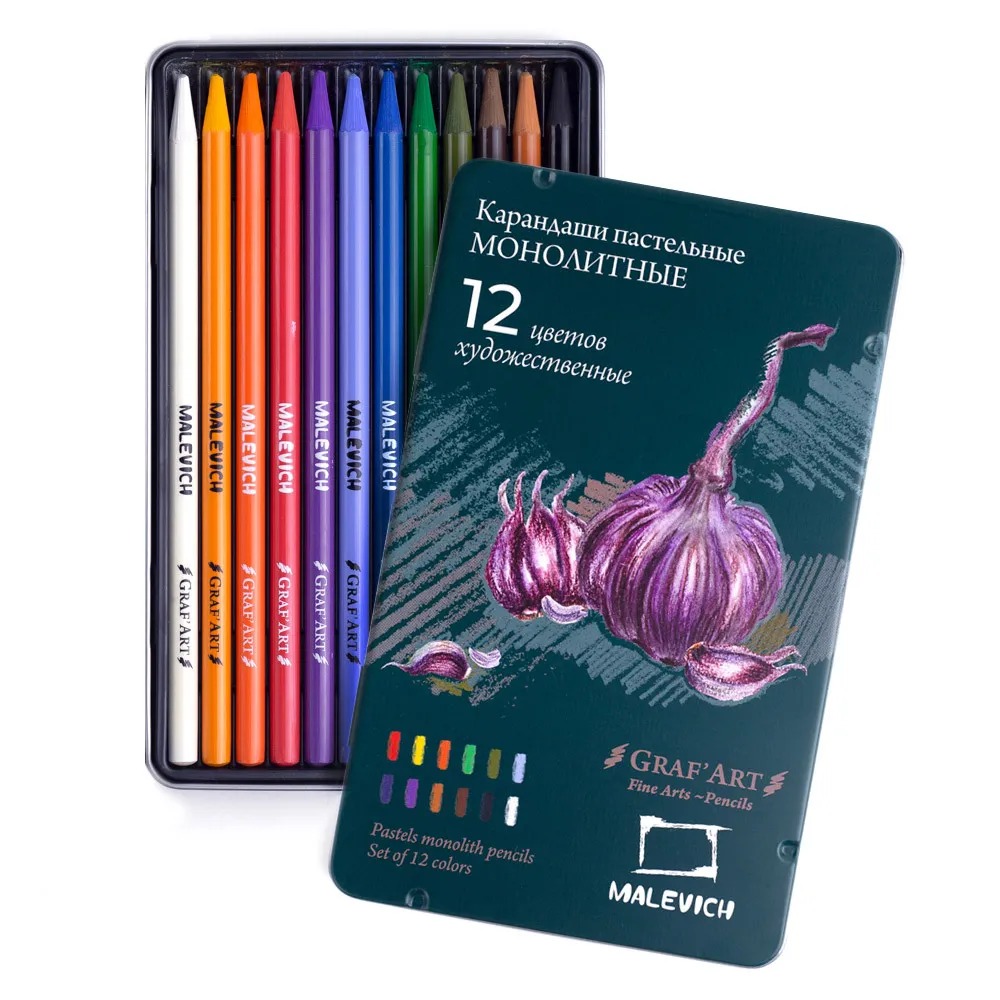 Набор пастельных карандашей монолитов Малевичъ GrafArt, 12 цветов