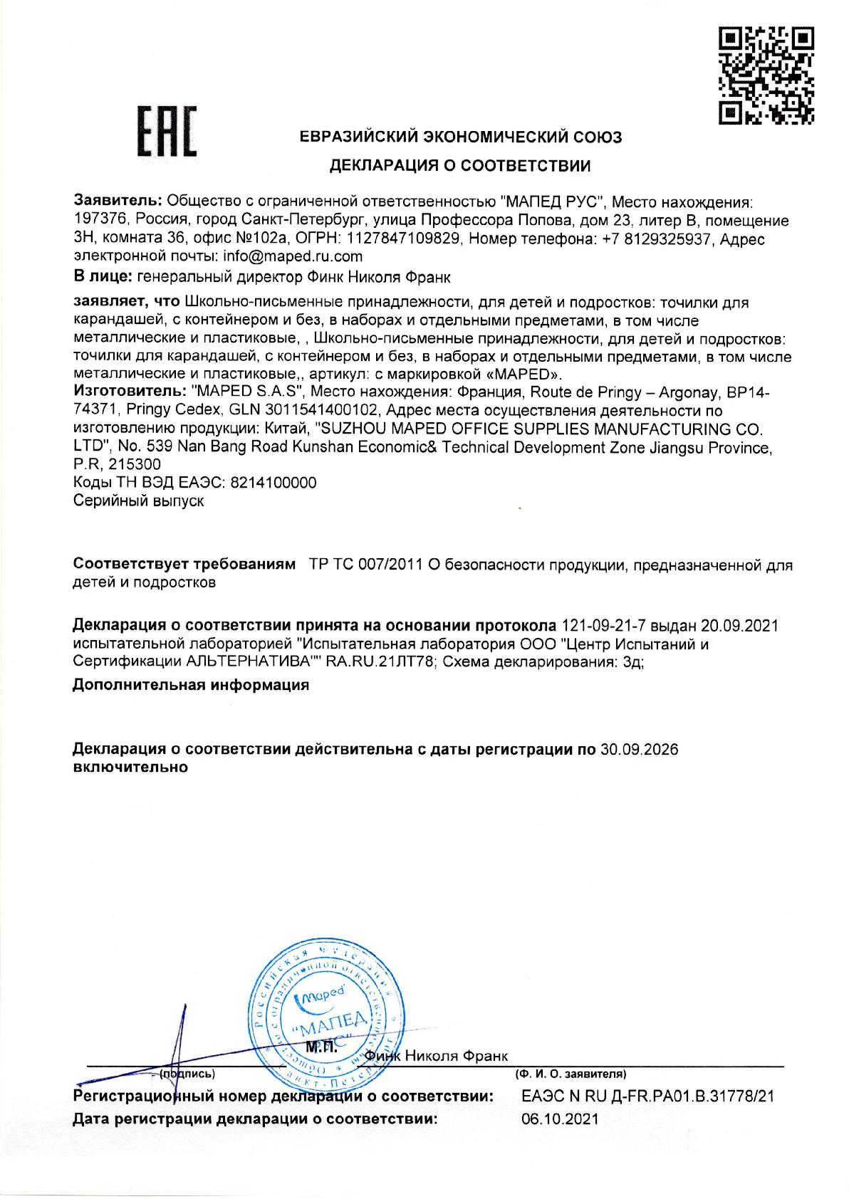 Точилка MAPED Boogy 1отв., 3 шт., блистер