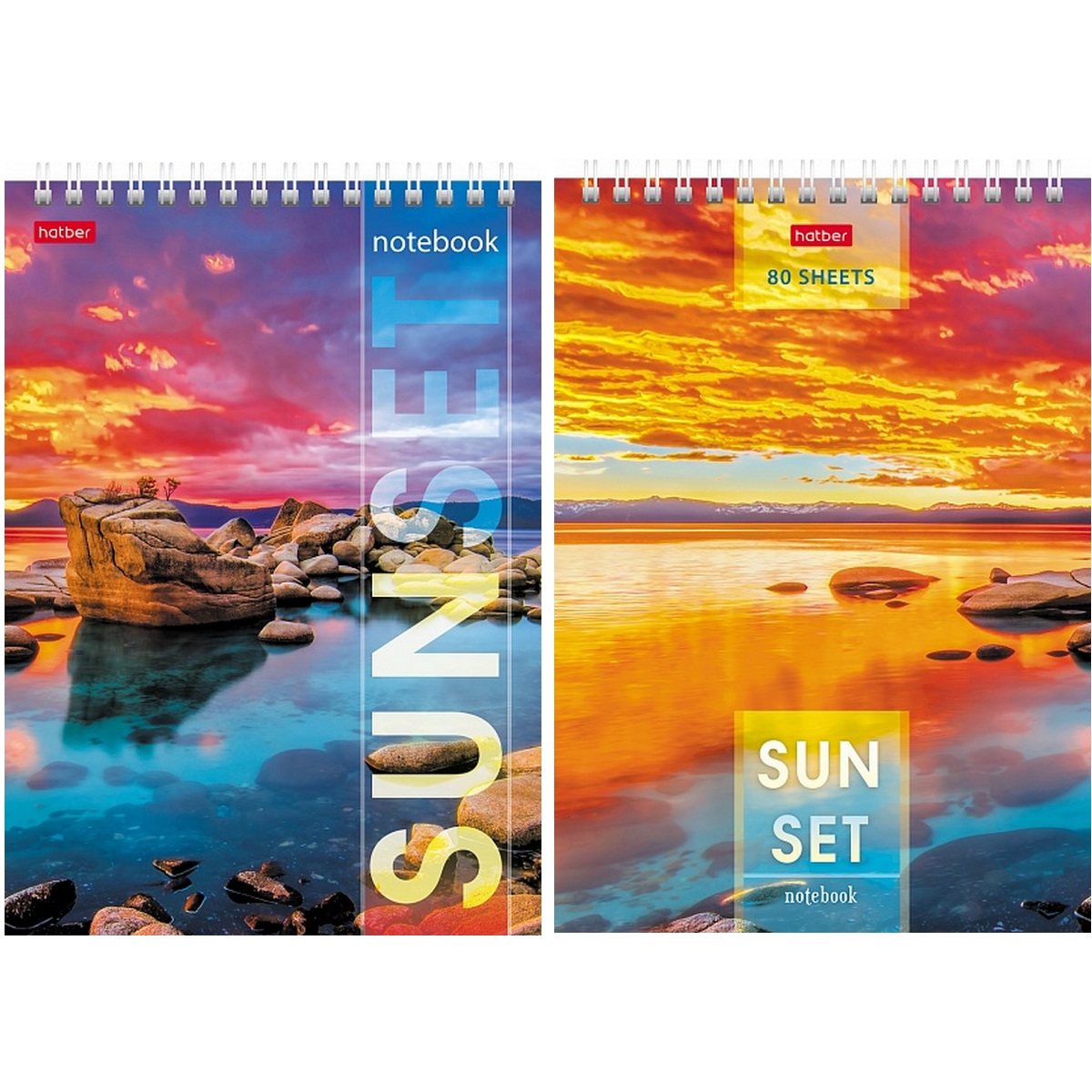 Блокнот 80л А5ф клетка 65г/кв.м Обл. мел.картон УФ-лак жесткая подложка на гребне серия -Прекрасные закаты-