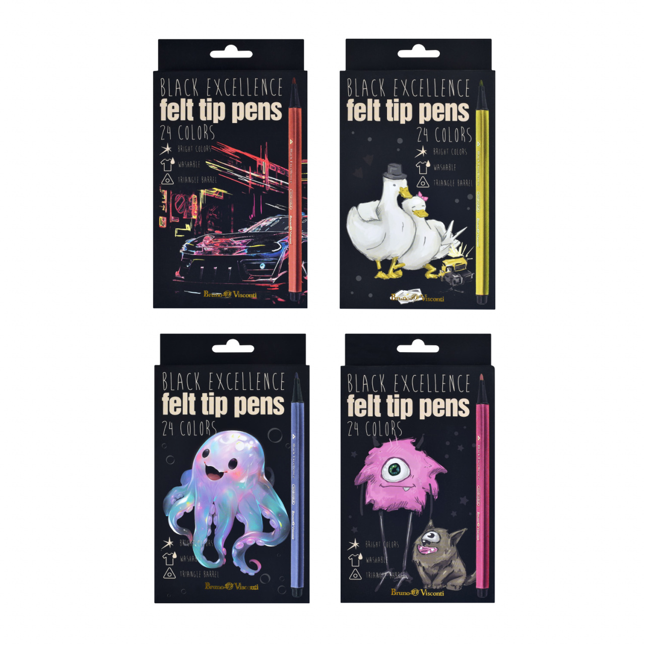 ФЛОМАСТЕРЫ "BLACK EXCELLENCE" 24 ЦВ. 4 ВИДА