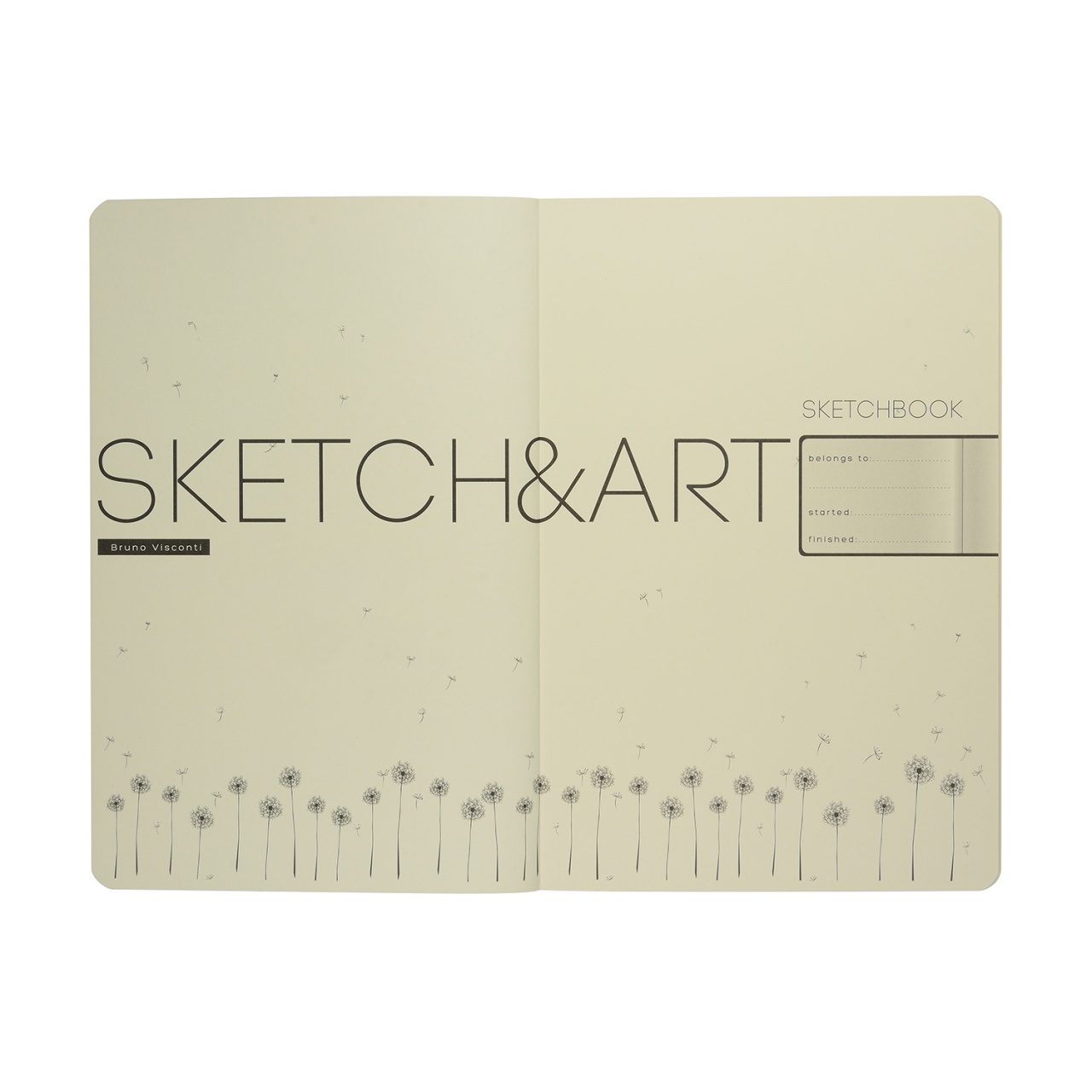 Скетчбук «SKETCH&ART» на 100 листов в книжном переплете от Bruno Visconti – это функциональный блокнот для зарисовок. Гибкая обложка из искусственной кожи с великолепным качеством отделки и скругленными углами – образец стиля и элегантности, комфорта и практичности. Скетчбук сохраняет первоначальный внешний вид даже при активном использовании и дарит приятные тактильные ощущения благодаря бархатистому покрытию Soft Touch. Формат А5 позволяет брать скетчбук в дорогу, он легко помещается в дамскую сумочку, а значит всегда будет у вас под рукой. Листы блока плотностью 100 г/кв.м, бежевого цвета - приятный и выгодный фон для создания эскизов и зарисовок цветными и чернографитными карандашами, ручками, линерами. Художественно оформленные форзац и нахзац с выделенным полем для персональных данных - еще одно преимущество скетчбука.