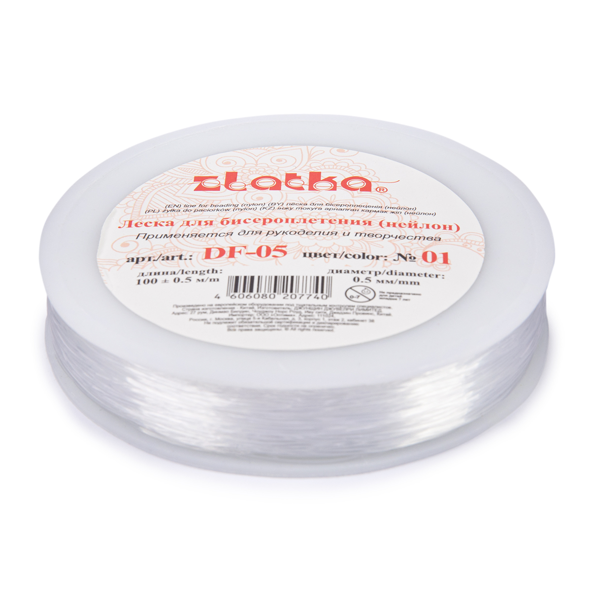 "Zlatka" для рукоделия "Zlatka" / "Gamma" Леска для бисера d 0.5 мм 100 м ± 0.5 м №01 белый