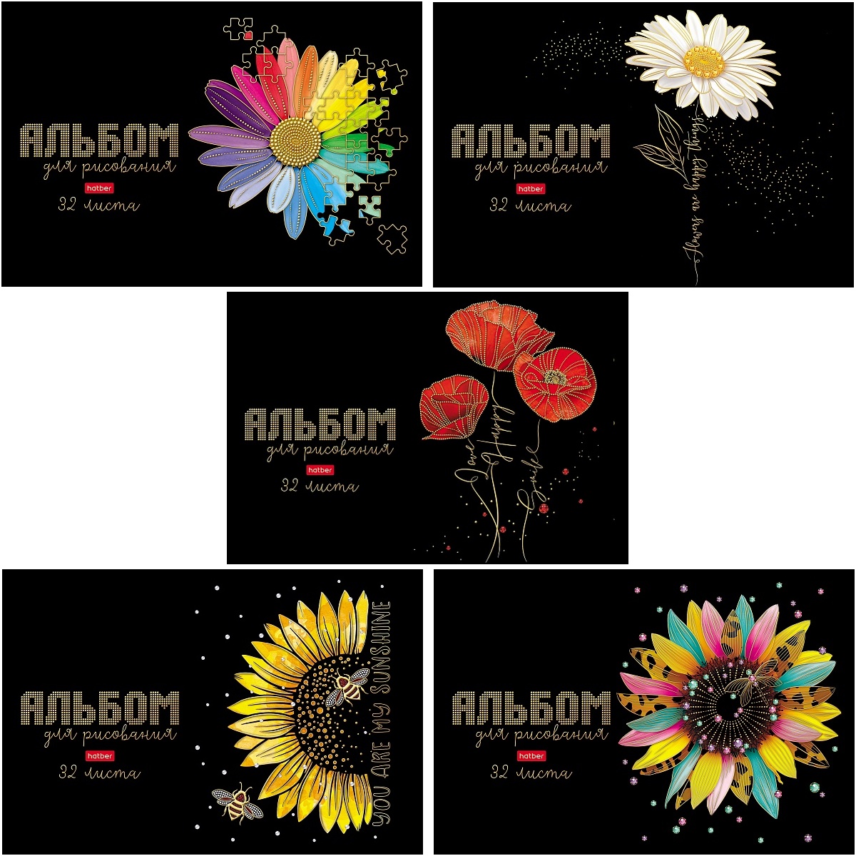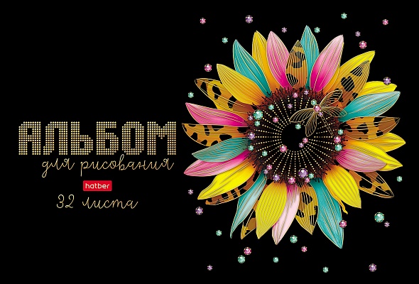 Альбом д/рисов. 32л. ХАТБЕР "Бал цветов" на скобе, матов.ламин., 3D фольга