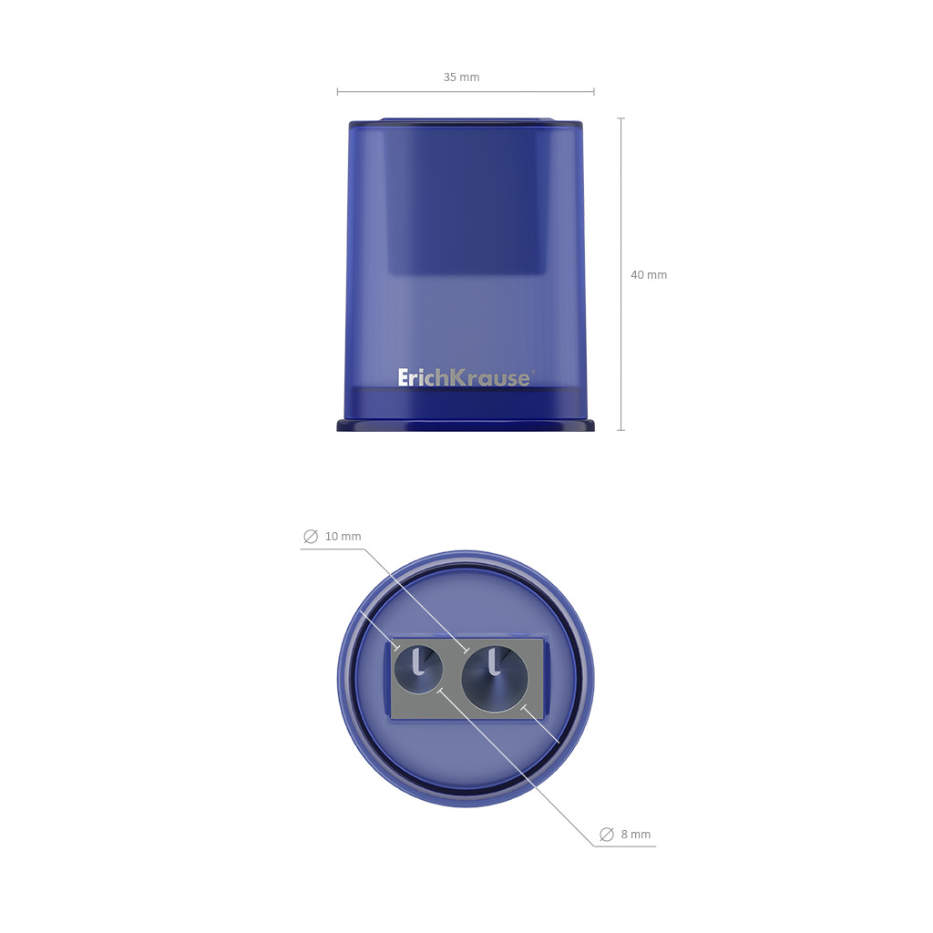 Металлическая точилка с ёмким тонированным матовым пластиковым контейнером для сбора стружки. Имеет два отверстия диаметром 8 мм и 11 мм для заточки стандартных и утолщенных (Jumbo) карандашей. Высококачественное никелированное брендированное лезвие из углеродистой стали гарантирует высокую производительность.
