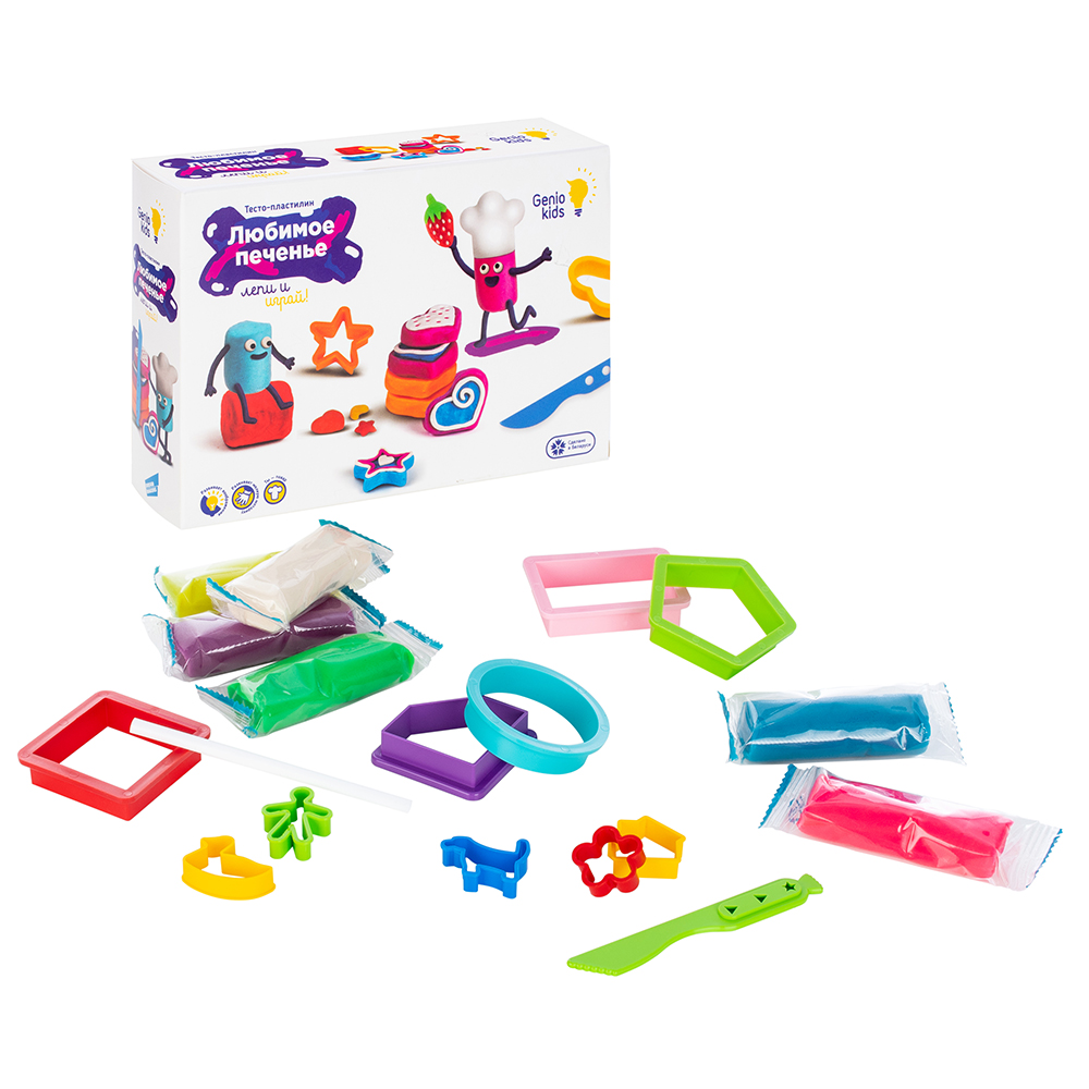 Набор для лепки Genio Kids-Art "Любимое печенье" 6цв., 180гр., формочки, стек, трубочка, карт.кор.