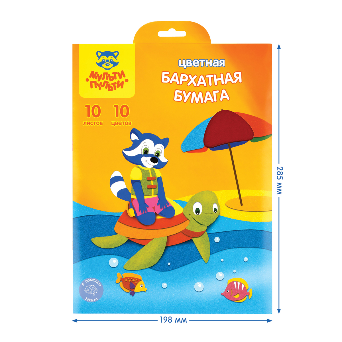 Набор цветной бархатной бумаги «Мульти-Пульти» серии «Приключения Енота» отлично подойдет для поделок и детского творчества. Бумага имеет размер 198*285 мм. Плотность бумаги формата А4 – 150 г/м2. В наборе представлено 10 цветов на 10 листах.