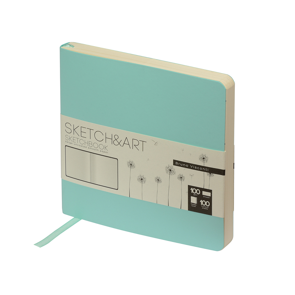 Скетчбук 145х145 Bruno Visconti "Zefir.Мятный" 100л., мягк.обл,искожа, 100г/кв.м, бум Ivory беж,