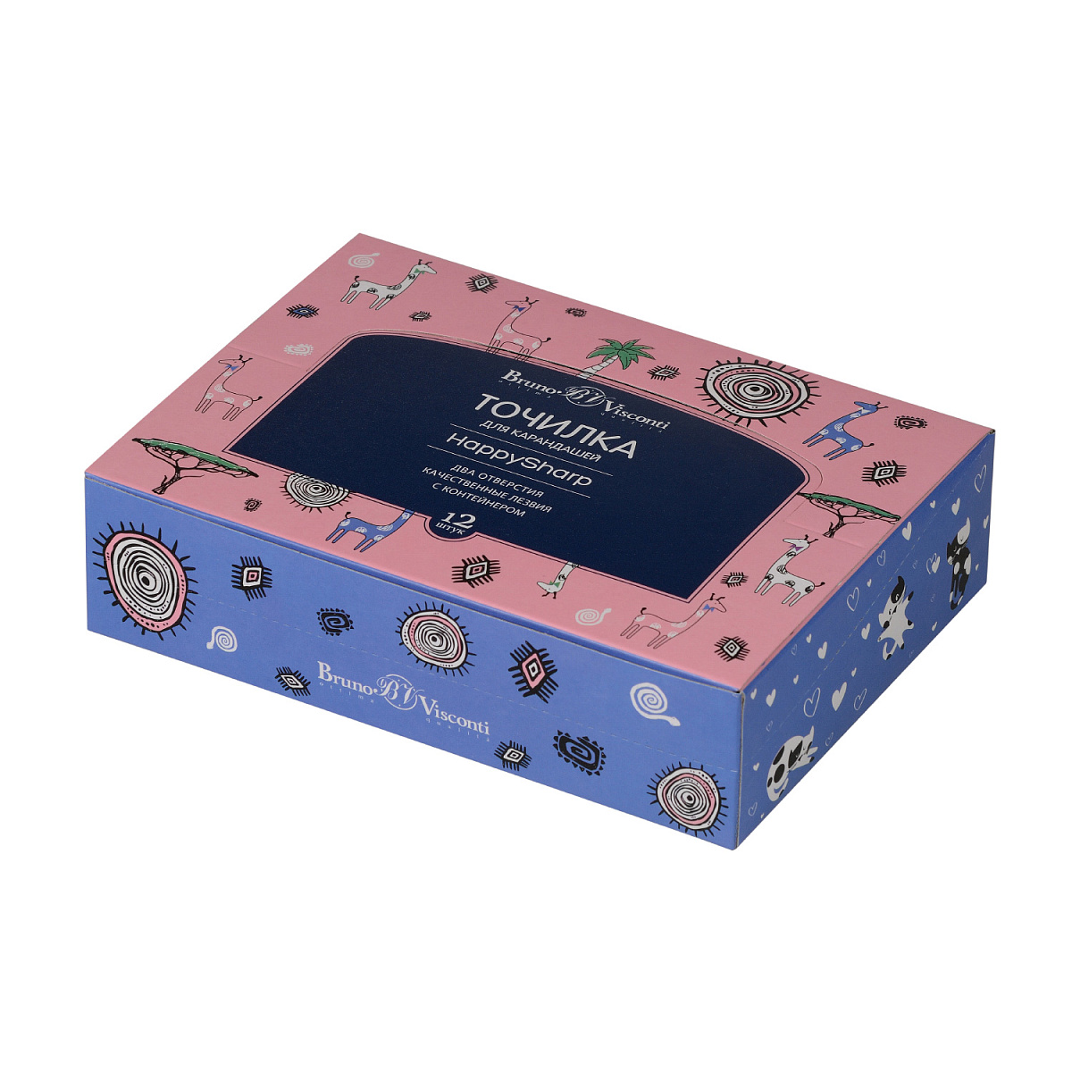 Детская точилка треугольной формы с контейнером для сбора стружки из коллекции "HappySharp". Качественная и удобная. Есть два отверстия, которые закрываются пластиковой крышкой, для заточки стандартных и утолщенных карандашей. Контейнер сделан из прозрачного пластика, так что ребенку легко контролировать его заполняемость и вовремя очищать. Точилка выполнена в двух цветовых решениях - розовом и голубом. Корпус украшен очаровательными принтами: кошки с сердечками и жирафы в саванне. В стандартной упаковке 12 шт. в картонном дисплее.