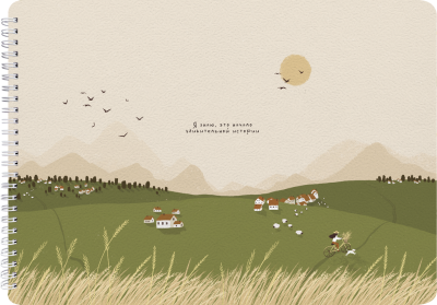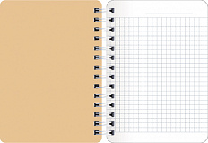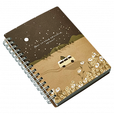 Нижняя : переплетный картон толщиной 1,2 мм. Спираль сверху. Внутренний блок: офсетная печать, бумага 100% белизны, 65г/м2. Дизайн внутреннего блока "в клетку". Особенности: тиснение золотой фольгой.