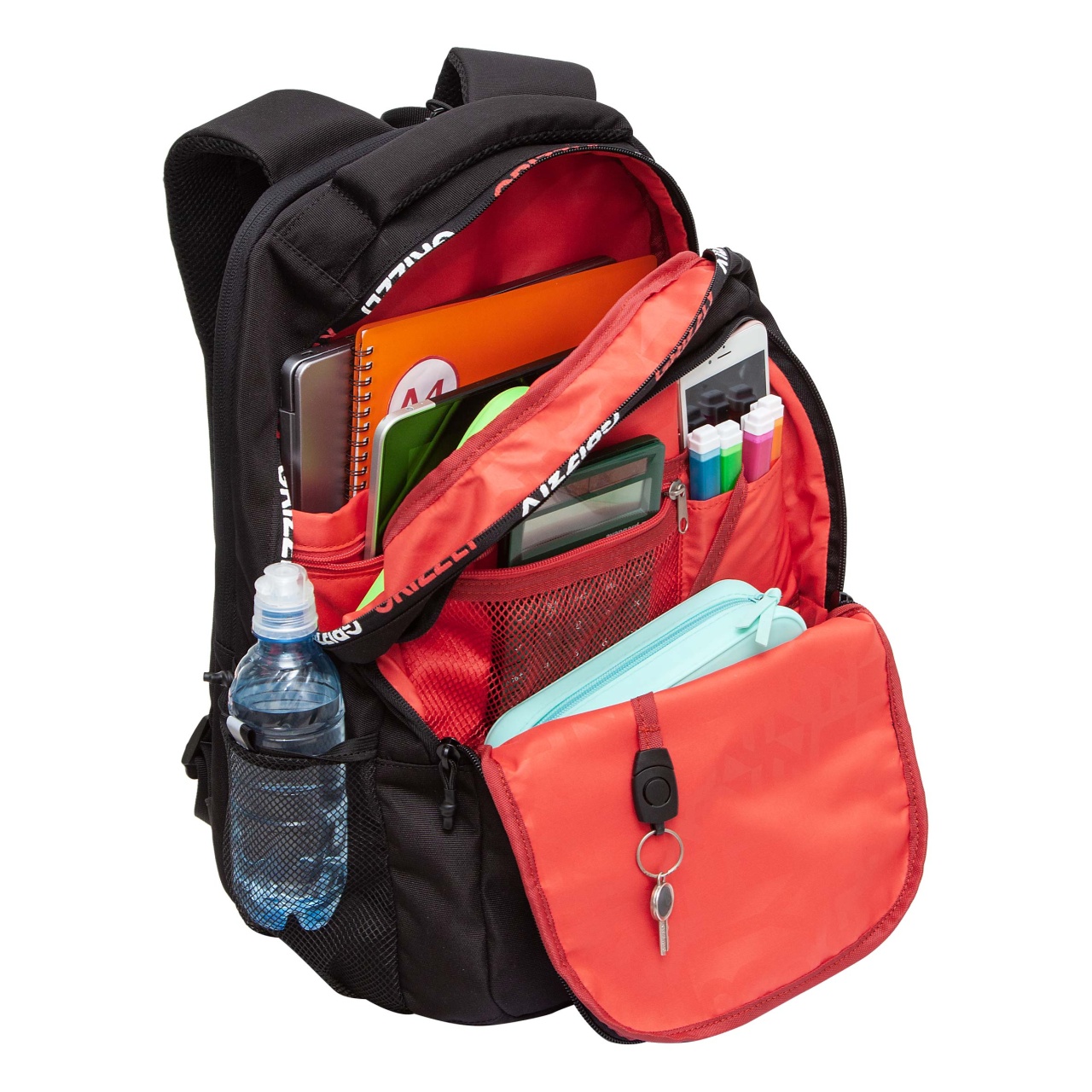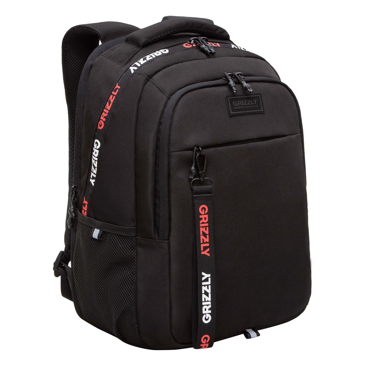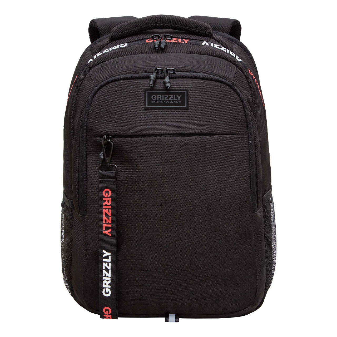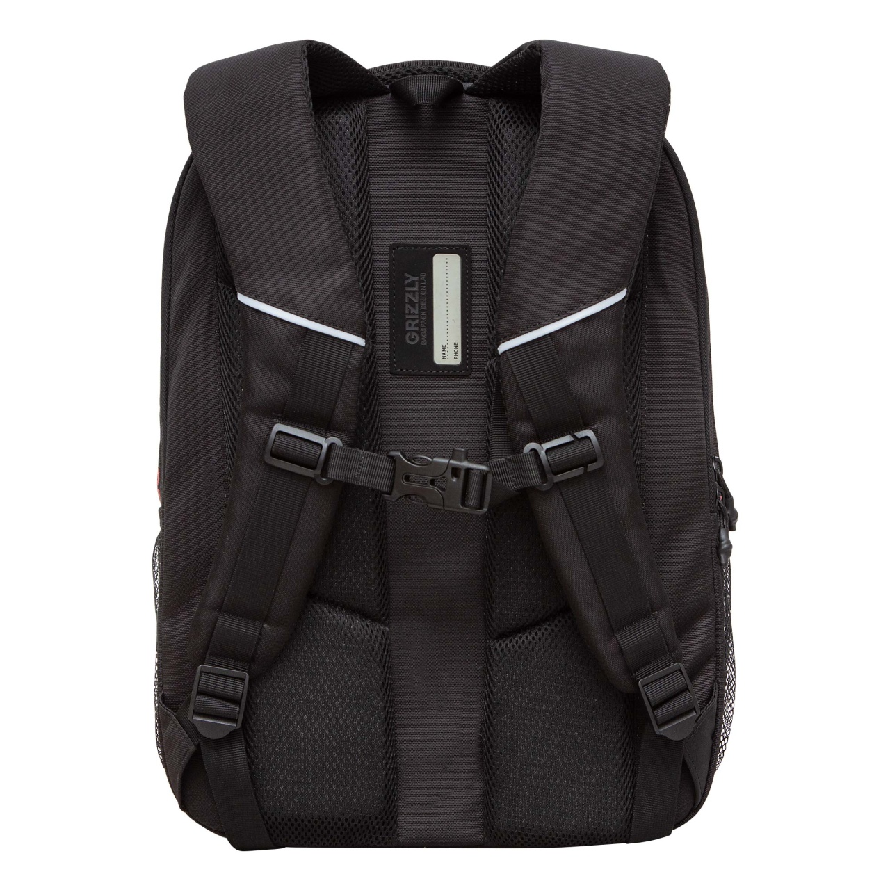 Рюкзак школьный Grizzly RU-432-3 черный-красный, 2отд., карманы, анатом.спинка, свет.элем, 31х42х22