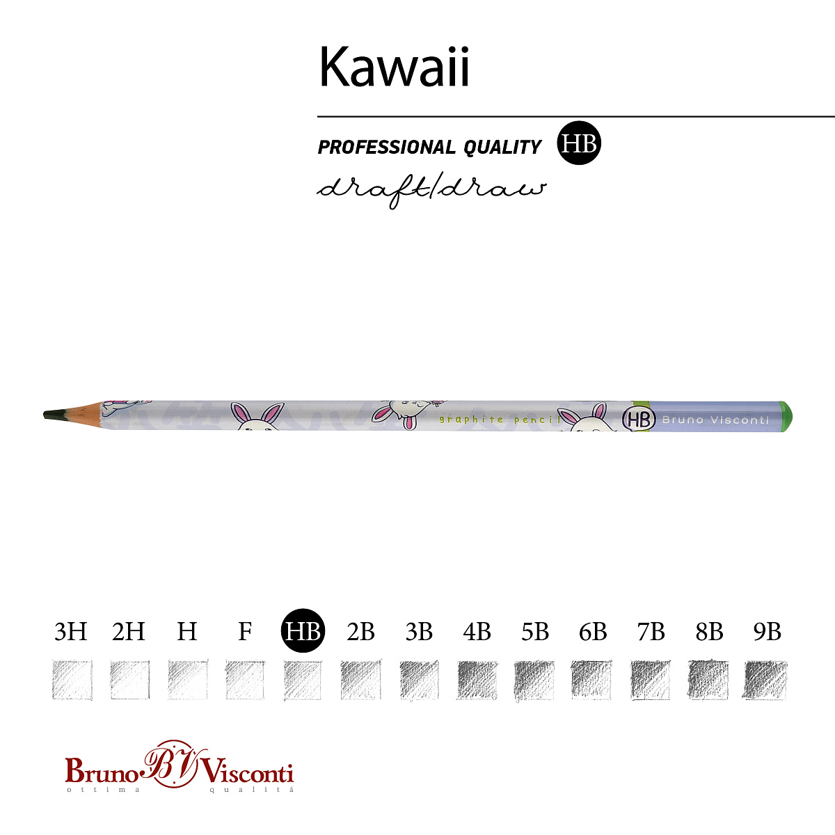 Карандаши KAWAII ANIMALS от Bruno Visconti – для тех, кто ценит эргономичность, качество и выразительность. Корпус карандаша пластиковый и поэтому обладает большей плотностью и прилеганию к стержню - он не бьётся даже при падении, хорошо затачивается.