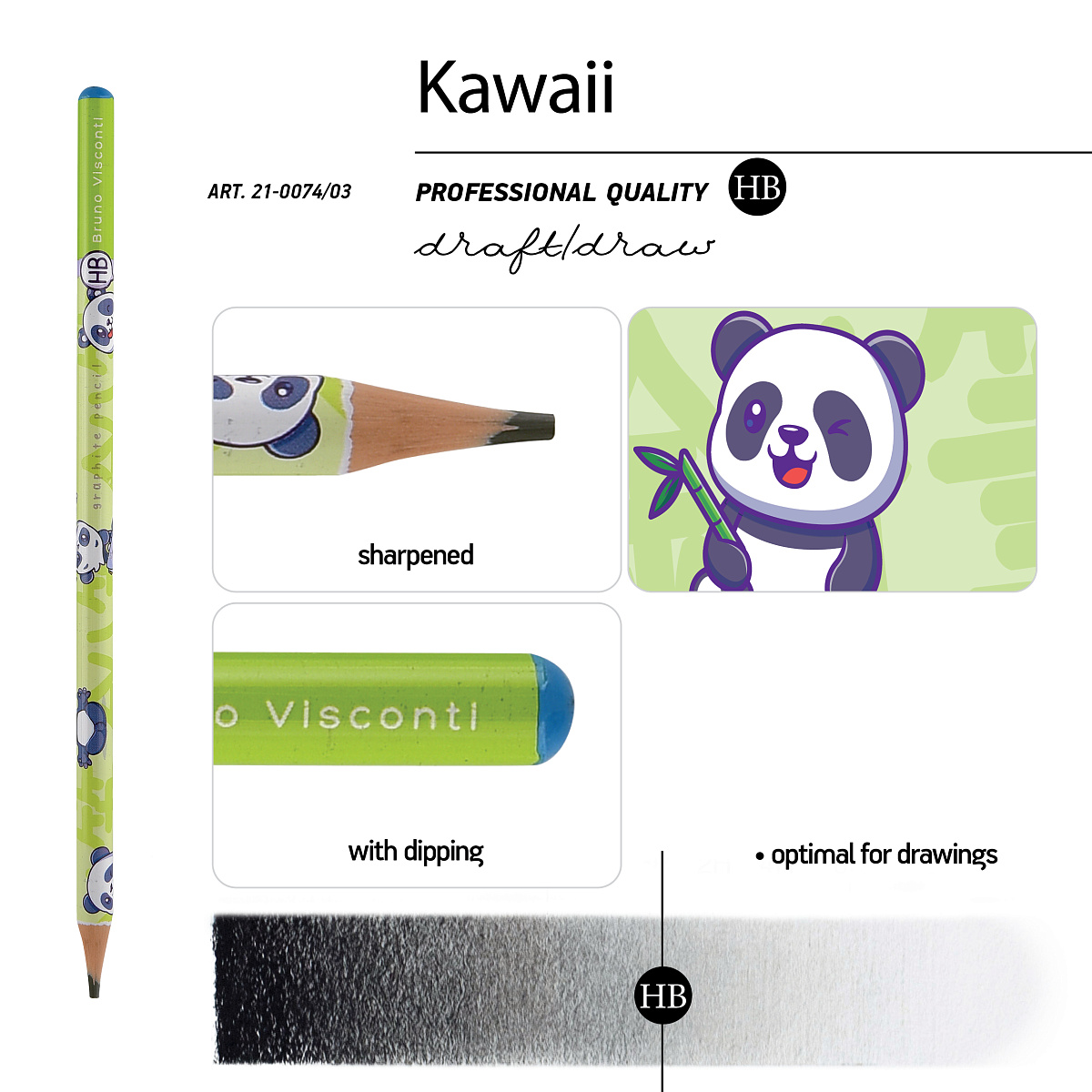 Карандаши KAWAII ANIMALS от Bruno Visconti – для тех, кто ценит эргономичность, качество и выразительность. Корпус карандаша пластиковый и поэтому обладает большей плотностью и прилеганию к стержню - он не бьётся даже при падении, хорошо затачивается.