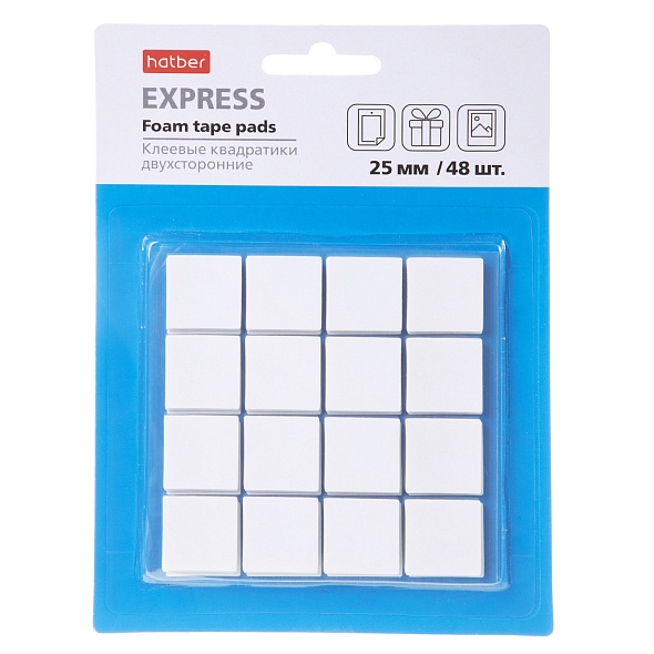 Клеевые квадраты ХАТБЕР 25мм*25мм, двухсторонние, вспенен.основа, 3 листа, 48 шт., европодвес